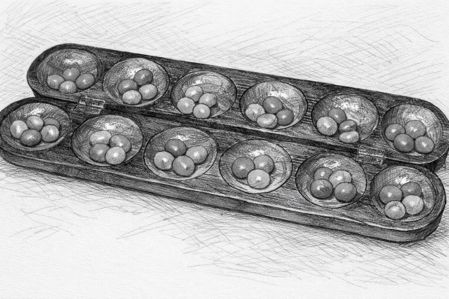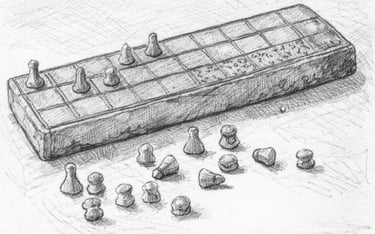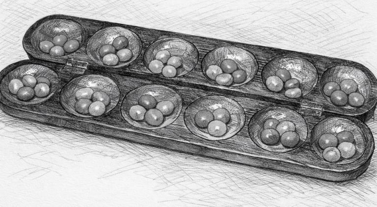 Jeu de l'Awalé - Illustration : ChatGPT d'après photographie Wikipédia
