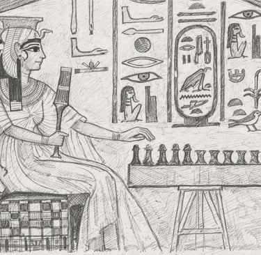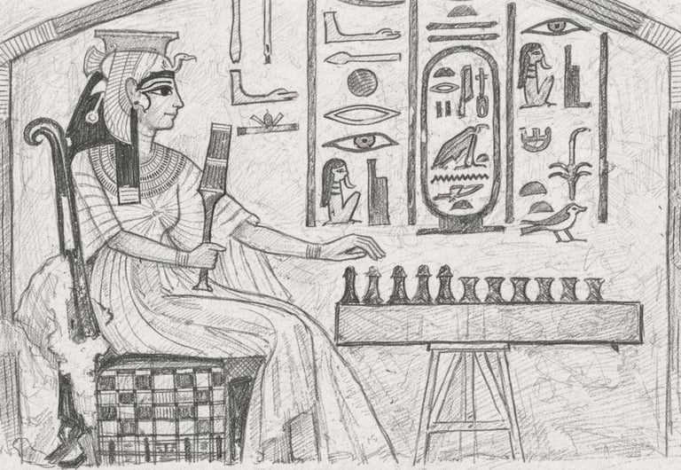Jeu de Senet - Illustration : ChatGPT d'après source photographique Famille Prevot