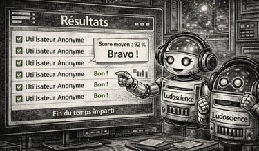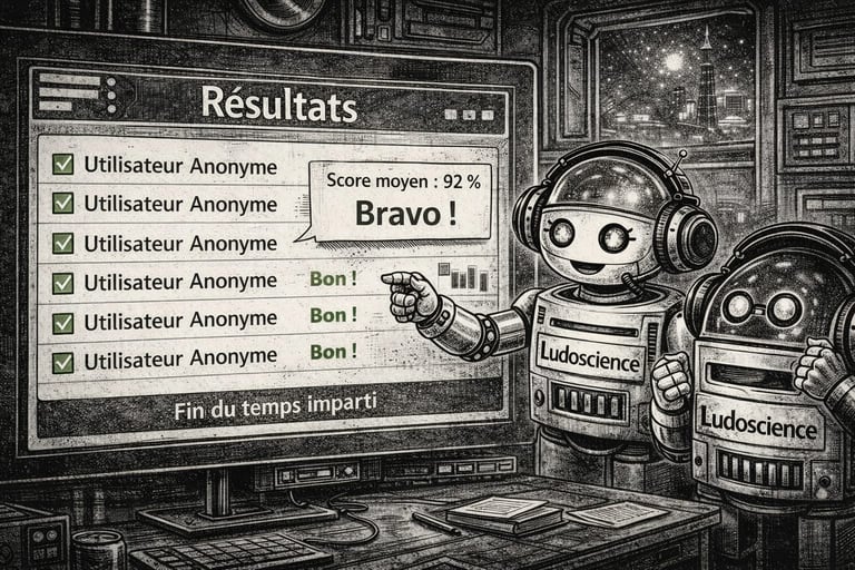Durant l’échange entre enseignants, Ludia raconte les bons scores obtenus à son évaluation suite au jeu proposé. Les collègues indiquent avoir obtenu de bonnes évaluations leur côté aussi mais en faisant un cours magistral en ligne. Globalement les évaluations sont meilleures qu’à l’accoutumé. L’un des collègues pose alors l’hypothèse suivante : « Pourquoi s’embêter à faire du jeu ? Ca prend du temps et il semble que les résultats liées aux évaluations soient identiques… Qu’en pensez-vous ? »…