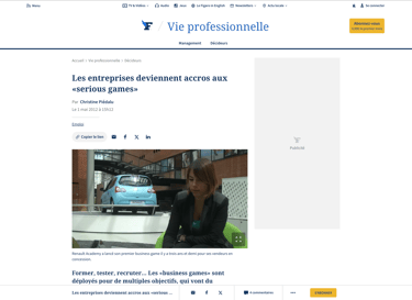 Le Figaro Vie Professionnelle : Les entreprises deviennent accros aux "serious games"