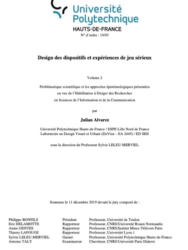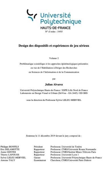 UPHF (2019) : Design des dispositifs et expériences de jeu sérieux (mémoire HDR)