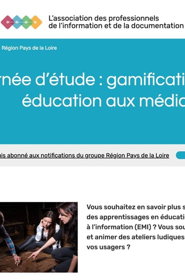 ADBS Pays de la Loire (2024) : Journée d’étude : gamification des apprentissages en éducation aux médias et à l’information