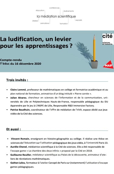 Universcience (2020) : La ludification, un levier pour les apprentissages